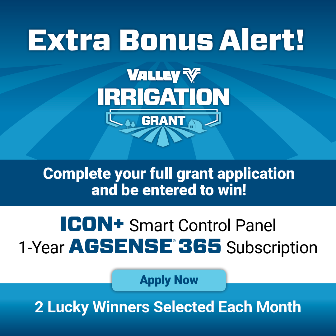 The Valley Irrigation Grant Program gives growers a unique opportunity to invest in irrigation improvements that deliver both immediate and long-term operational value. With $100,000 in total funding available ($75,000 for the Grand Prize and $25,000 for the Second Prize), the program is designed to help growers tackle challenges, improve efficiency, and unlock the full potential of their land.
